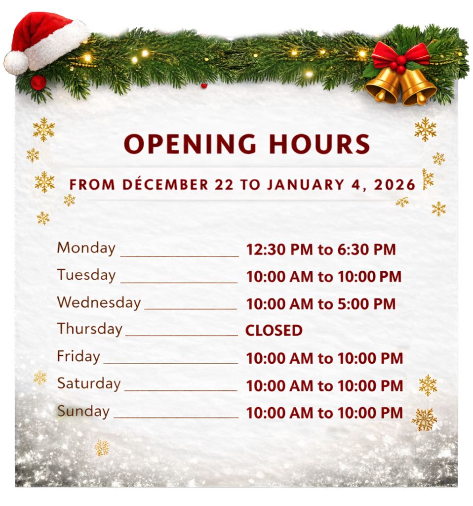 The holiday season is the perfect time to create memorable moments with family and friends. During this period, our centres remain open so you can continue enjoying our experiences, with a few schedule adjustments to keep in mind.